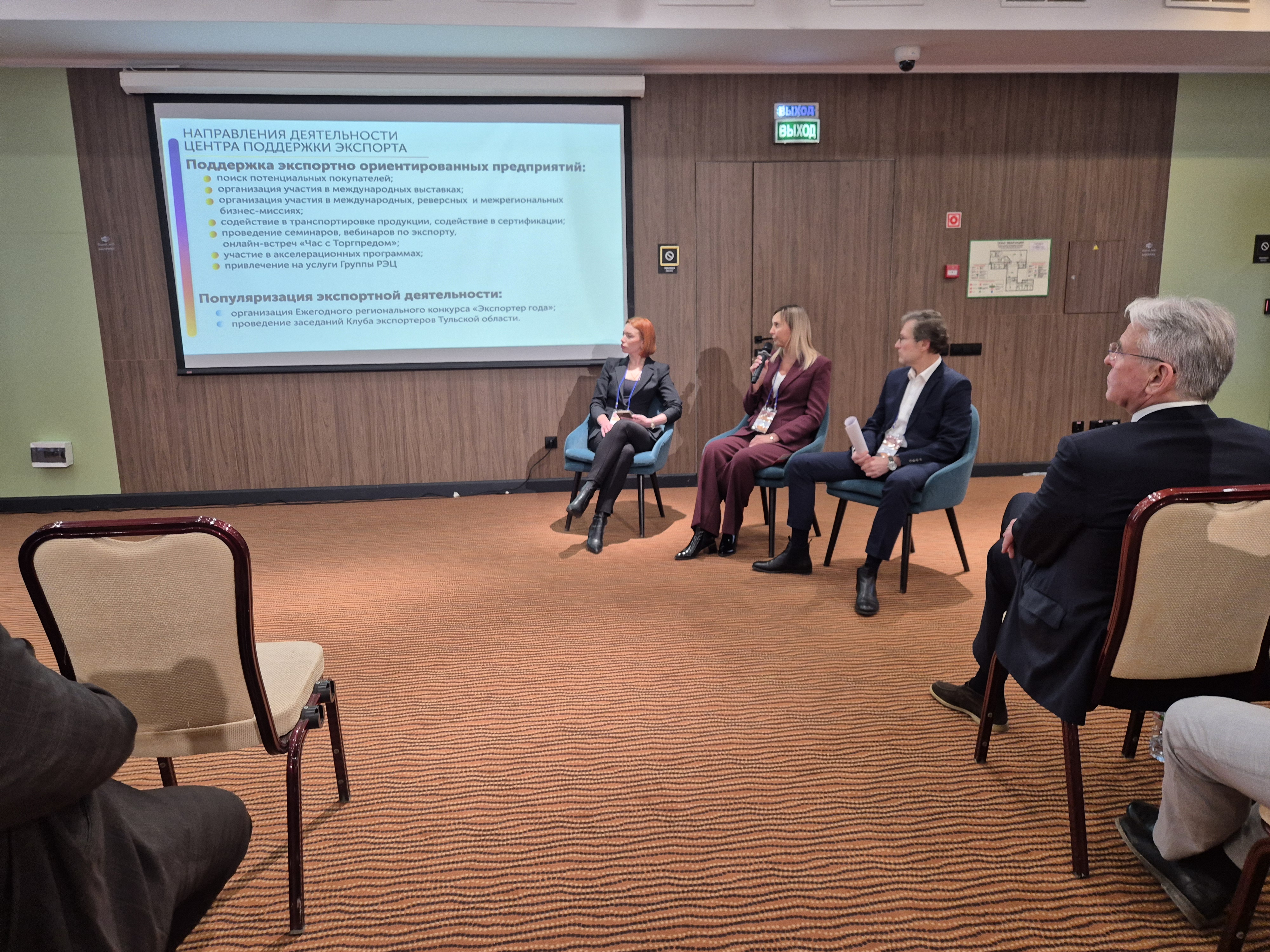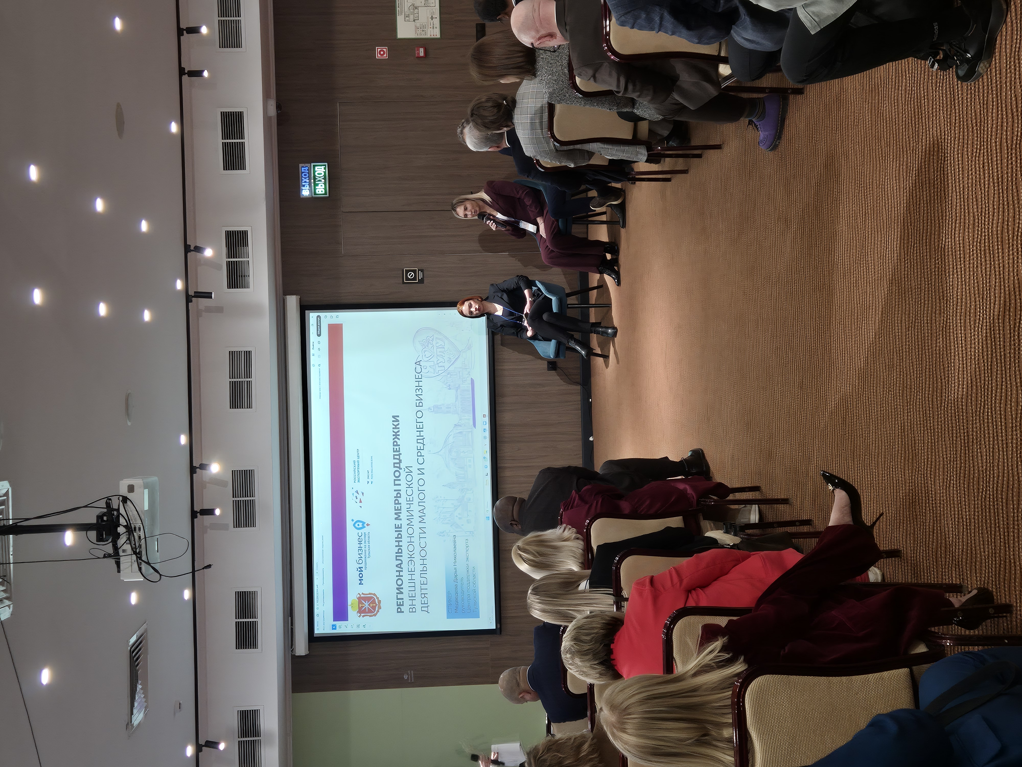 Руководитель Центра поддержки экспорта Тульской области Дарья Медведева рассказала о мерах содействия малому и среднему бизнесу среди них - организация бизнес-миссий и участие в международных выставках, помощь в поиске иностранных партнеров, софинансирование затрат экспортера на транспортировку продукции и содействие в получении сертификата «Сделано в России».