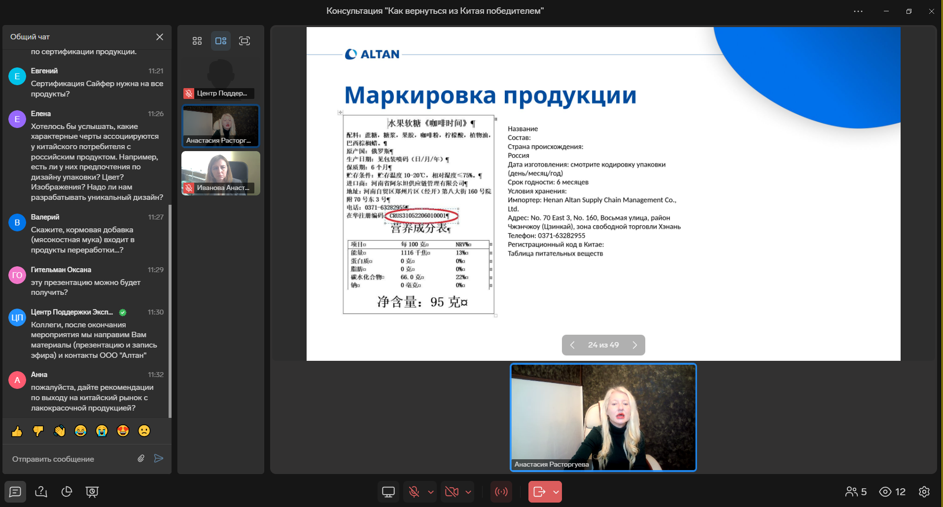 В ходе онлайн-встречи участники получили пошаговое руководство по выходу на китайский рынок. Также были проанализированы перспективные продуктовые ниши для тульского экспорта. Предприниматели разобрали конкретные кейсы.