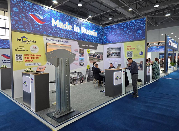 ВЭБ.РФ) Made in Russia представляет промышленная компания «Веста». Предприятие производит металлоконструкции для быстровозводимых зданий. На выставке тульская компания демонстрирует образец лёгких стальных конструкций, которые используются для строительства промышленно-гражданских зданий.